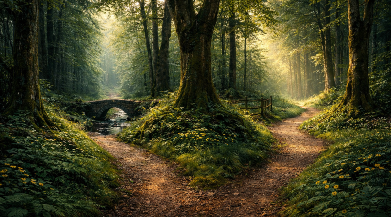 Zamislite sada sliku na kojoj se put račva. Jedna staza vodi lijevo, preko malog mostića koji nestaje iza krošnji. Druga staza vodi desno, dublje u osunčanu šumu obasjanu toplim zracima. Kao treća opcija, postoji i ostanak na mjestu, u podnožju velikog stabla koje pruža hlad i sigurnost. Koji izbor vas najviše privlači?