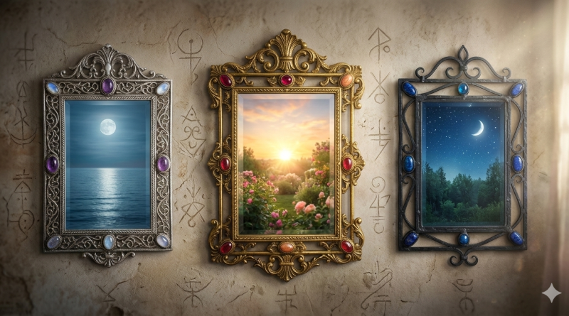 Ovaj test sa tri mistična ogledala dizajniran je da vam pomogne da se povežete sa tim unutrašnjim glasom. Svaki detalj od okvira ogledala do prizora koji se u njemu nazire nosi specifičnu poruku o vašoj budućnosti i blagostanju.