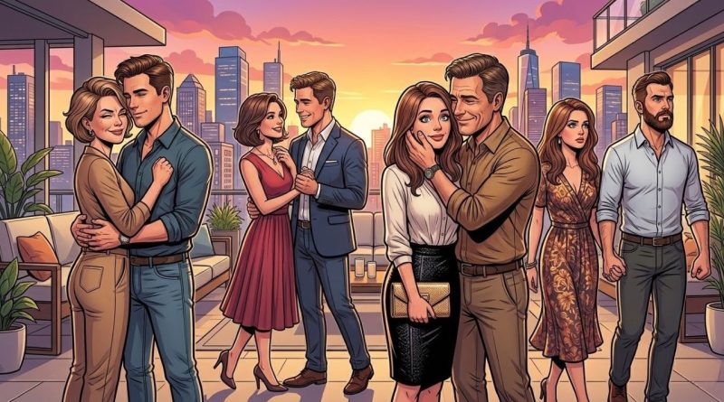 Odgovor: Par koji se pretvara je par na desnoj strani (žena u cvjetnoj haljini i muškarac sa bradom).