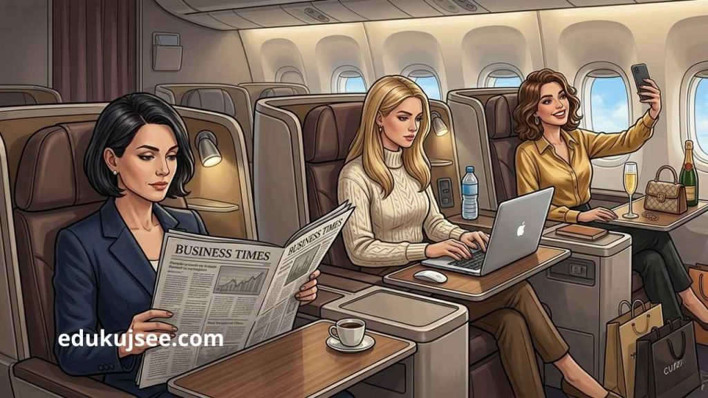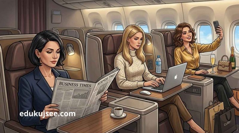 Kada uklonite buku emocija i fokusirate se na logiku stola, jedan detalj se izdvaja. Stvarni putnici biznis klase često koriste to vrijeme za fokusiran rad ili odmor. Žena koja čita finansijske novine i žena koja radi na laptopu pokazuju disciplinu i fokus na dugoročne ciljeve. One vide biznis klasu kao alat za efikasnost, a ne kao pozadinu za fotografisanje.